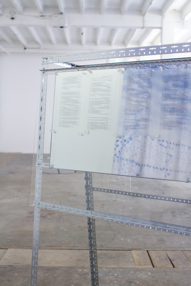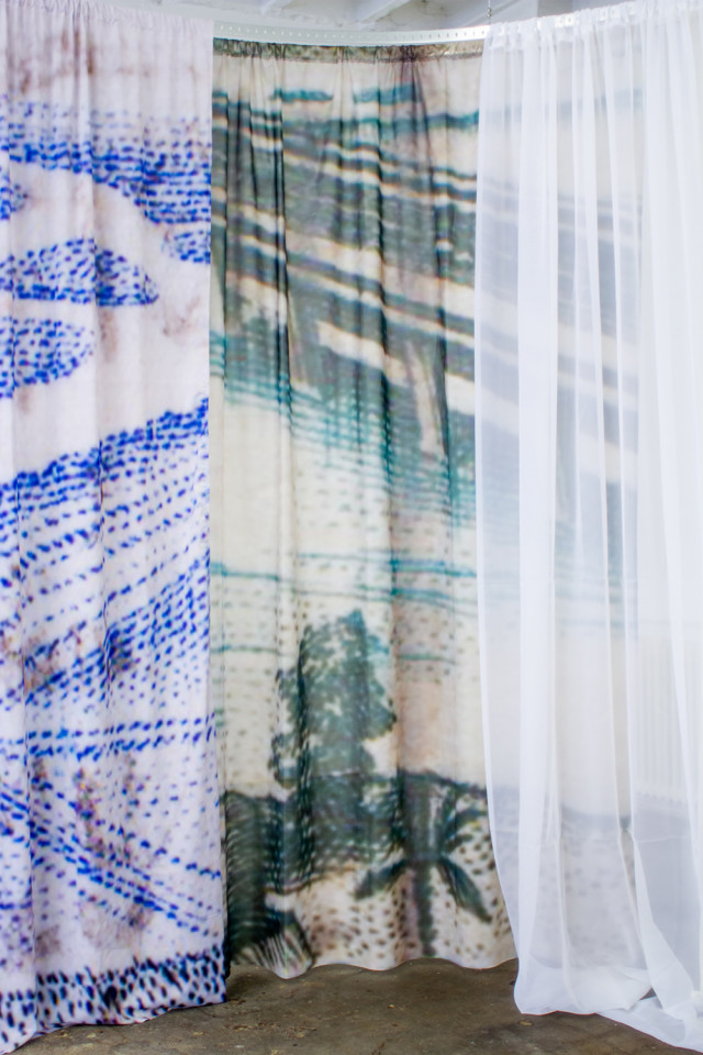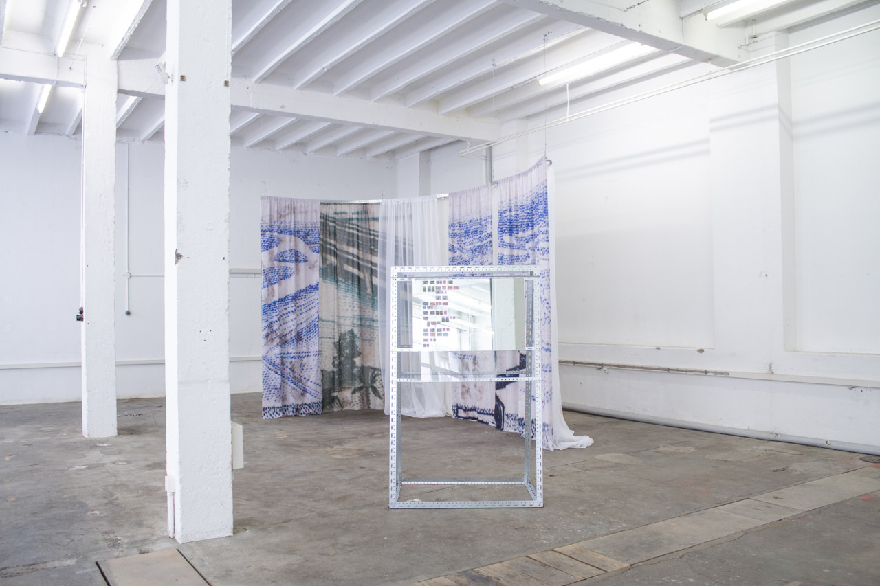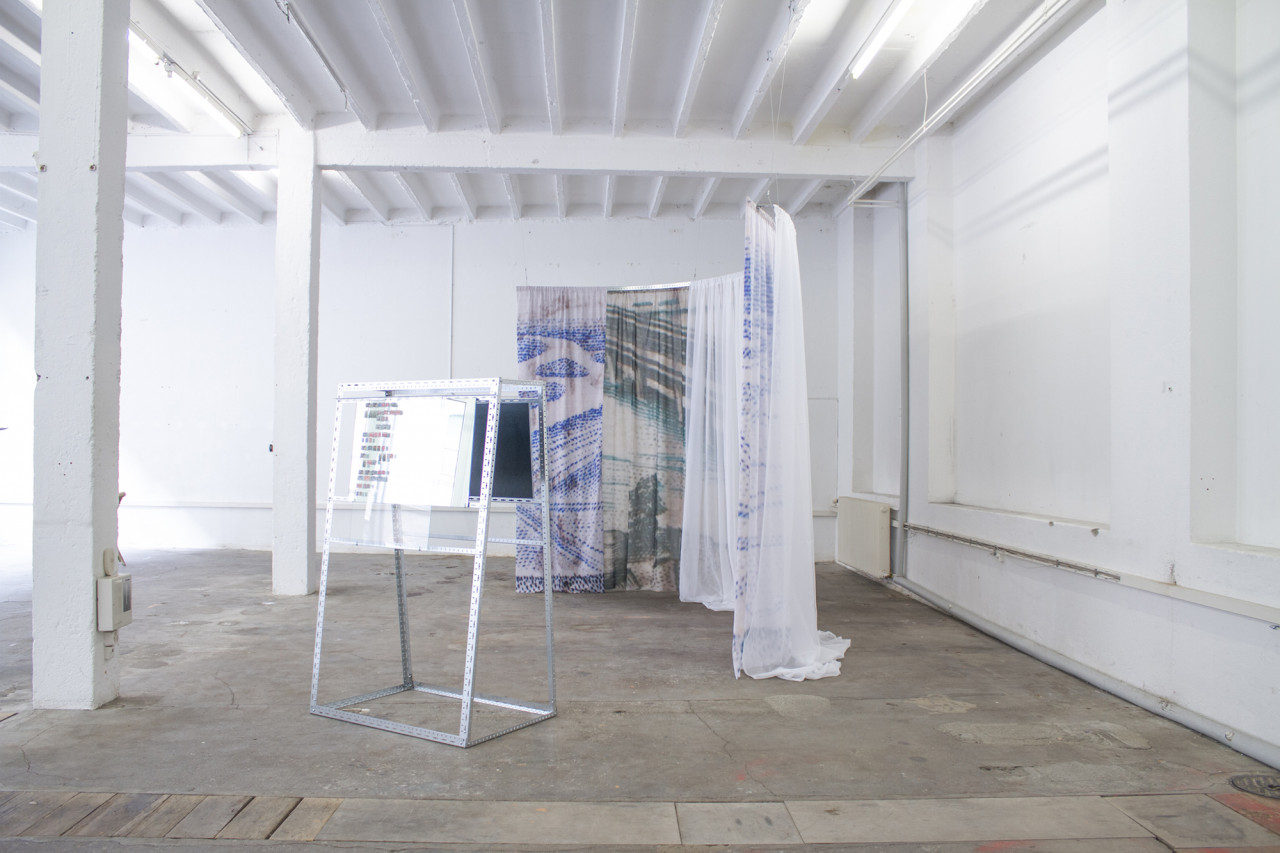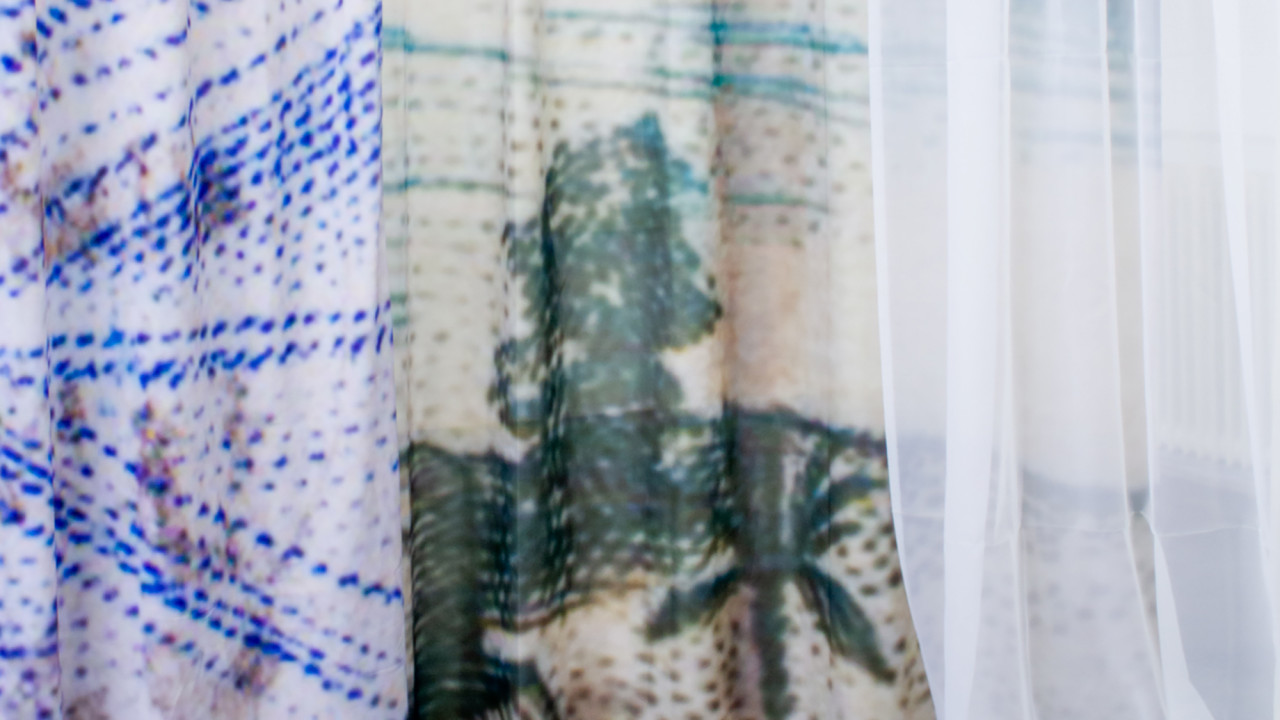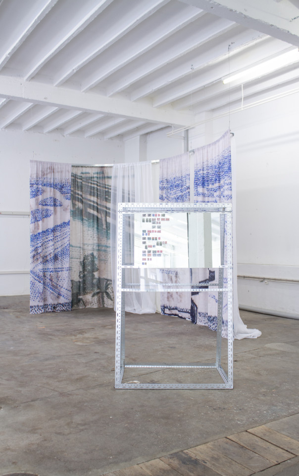 Entre 1956 et 1962, mes grands-parents paternels ont échangé des centaines de lettres alors que ma grand-mère vivait dans son pays d’origine, en Algérie, et que mon grand-père suisse travaillait comme topographe pour une société française engagée par le gouvernement colonial dans plusieurs pays du continent africain. Intitulée d’après une phrase répétée tout au long de leur correspondance, l’installation as-tu fais bonne traversée présente une sélection de timbres issus des lettres d’archives, scannés et réimprimés. De l’autre côté d’une étagère métallique, un texte reconstitue ma lecture de ces documents dont il manque la moitié : celles écrites par ma grand-mère n’ont jamais été conservées par mon grand-père. De longs rideaux sur lesquels sont imprimés des paysages extraits des timbres sont suspendus, évoquant un décor domestique abstrait où la tension entre les représentations coloniales de ces images d’état se confronte au contenu intime des lettres.