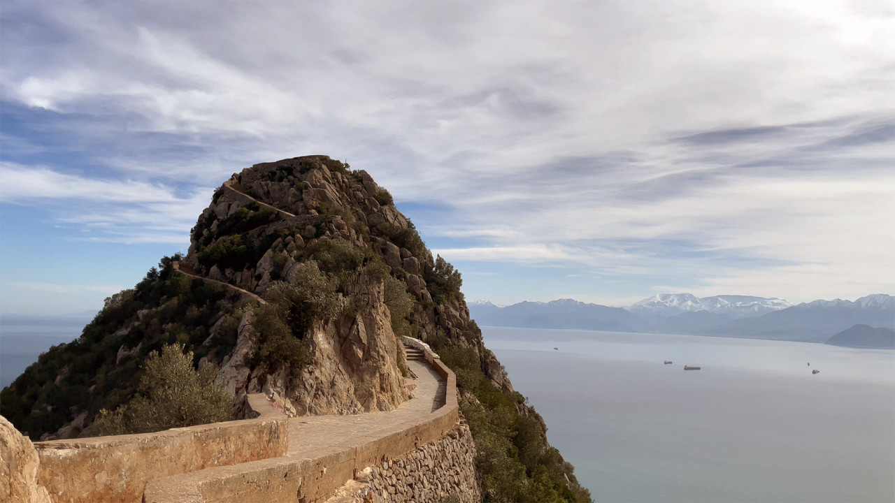 Au moment de la déclaration d’indépendance de l’Algérie en juillet 1962, ma grand-mère algérienne et mon grand-père suisse vivent à Oran. Quelques mois plus tard, il lui écrit une carte postale alors qu’elle vient d’arriver en Suisse avec leurs enfants, témoignant de son impossibilité à transporter leurs effets personnels en dehors du pays. Cette carte postale, la dernière image de l’Algérie au sein des archives familiales, est une photographie du site touristique Cap Carbon à Béjaïa. Sous forme d’un montage de prises vues de ce même site aujourd’hui, l’essai vidéo looking at it now a été réalisé en collaborant avec une équipe de cinéastes à distance. Des fragments de nos échanges sur le processus de production sont retranscrits sous forme de sous-titres qui évoquent la difficulté à capter ces images. Hors-cadre, la présence humaine est suggérée par des sons et des mouvements à peine perceptibles : des pas sur le chemin, le cliquetis d’une caméra, l’ombre d’une main. C’est finalement le paysage, suspendu et inchangé, qui devient le témoin d’une nouvelle histoire.
