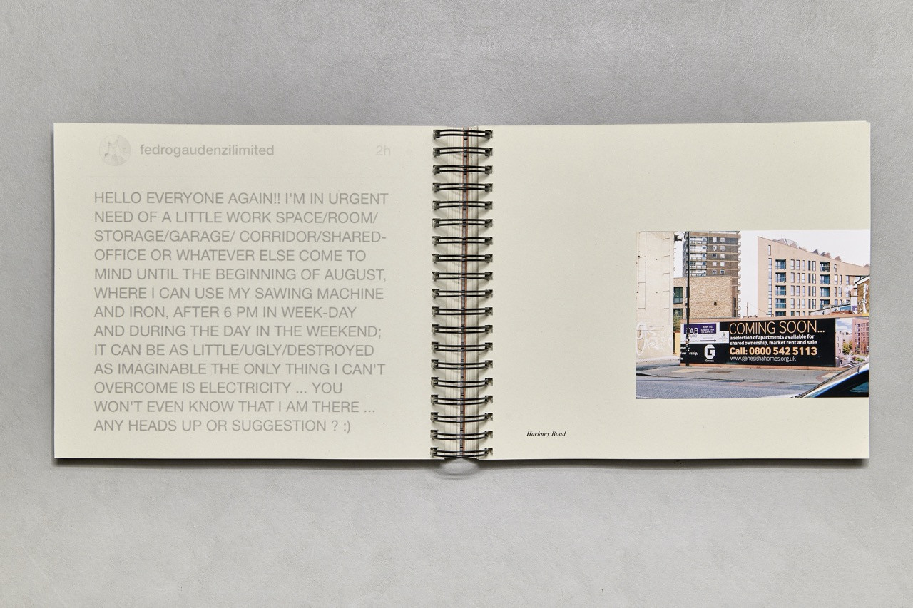 Dans cette ville très étendue où la circulation en voiture est payante « intra muros » pour ceux qui n’y résident pas, et où les transports en commun sont onéreux, la mobilité géographique et sociale est entravée par des restrictions économiques. Par conséquent, la vue surplombante préconisée par le slogan immobilier « Have more fun at the top », favorise l’accès à une minorité fortunée de la population. En réponse à cette répartition spatiale des points de vue distribuée selon les appartenances sociales, la cartographie cognitive investit une économie moins spectaculaire dont celle des systèmes textuels du paysage urbain. Les médiations qu’offrent les panneaux publicitaires des chantiers permettent de localiser les structures non représentables de la société. Dans le cahier de l’artiste, les promesses de développement urbain sont contredites par la sélection d’articles de journaux qui rendent publics les revers des scandales financiers et politiques. La béance mémorielle laissée par les entrepôts rasés ou réaffectés est mise en perspective par les expressions les plus anodines, telle qu’une annonce désespérée qui se contente d’un espace de travail précaire, ou le graffiti d’Hidden Charms qui incite, avec un esprit de dérision, à voir les charmes cachés des sites délaissés. »