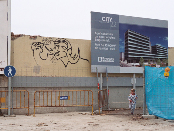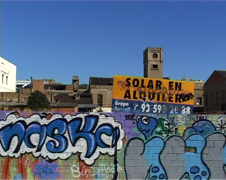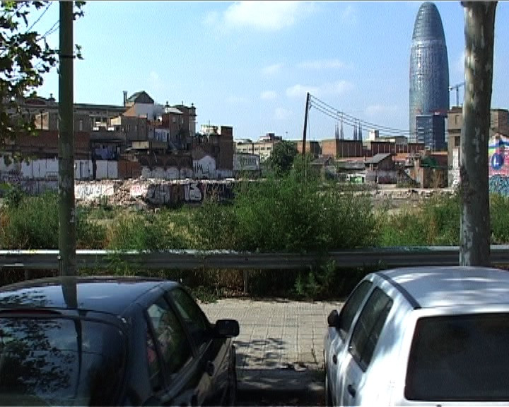 Et ce sont justement ces «transformations physiques» du tissu urbain que retrace Véronique Goël : alternant les travellings latéraux pris depuis une voiture, Poble No sillonne les rues du quartier, découvre des immeubles en décombre, des terrains en friche et d’incessants chantiers, ponctués de-ci de-là par des cheminées d’usine et des bâtiments neufs, oblitérant les vestiges du quartier ouvrier. Parallèlement à cet arpentement d’un espace béant et éventré, la bande-son délivre, par bribes, une série de données factuelles, portant aussi bien sur la fluctuation de la population et des entreprises en activité dans le quartier que sur la réalité économique des travaux entrepris. Le propos se recentre sur les mécanismes de la spéculation immobilière, face à l’ouverture de ce gigantesque marché qui conduit à la délocalisation de la population. La musique (une composition originale pour piano préparé) souligne, par ses sonorités industrielles, la disparition du passé ouvrier de Barcelone, pourtant constitutif de son histoire. Aussi Véronique Goël ne manque-t-elle pas de recourir à des archives photographiques, à des traces renvoyant à une histoire désormais inaccessible, opérant par là un travail de mémoire, si ce n’est de réparation du passé. Ce recours à des documents photographiques, impliquant un figement du plan et une limitation des mouvements de la caméra, inverse le balayage constant du champ qui constitue le principe constructif du film – et réinscrit en continu les propos jusqu’ici égrenés lors des différents plans séquences. Et de fait, après une douzaine de travellings latéraux droite/gauche, la caméra inverse sa trajectoire, découvre un hôtel cinq étoiles, rappelant vaguement les formes d’une construction industrielle, avant de s’immobiliser ; deux plans brefs et fixes suivent, précédant l’exposition d’une dizaine de photographies, la plupart en noir et blanc. Une construction cylindrique, détruite à l’époque des Jeux Olympiques, est présente à deux reprises dans les archives photographiques. Selon le même principe de raccord formel, c’est une photo en couleur, représentant la place du Forum, avec notamment l’édifice de Herzog et de Meuron et la tour Agbar au loin, qui introduit aux derniers travellings: par l’entremise d’un raccord dans l’axe, le film réintègre le régime de l’image en mouvement, en recadrant l’hôtel Princess (une construction d’Oscar Tusquets) au sein de la place du Forum. Les mouvements latéraux de la caméra qui font suite à ce bref plan fixe relancent la trajectoire implacable du film, exhibant dans un mouvement étale les décombres de la ville industrielle, entrecoupée de terrains vagues et masquée par des rangées de panneaux publicitaires. En ce sens, Poble No constitue un radical contrechamp aux monuments signés Nouvel, Herzog et de Meuron, etc. »