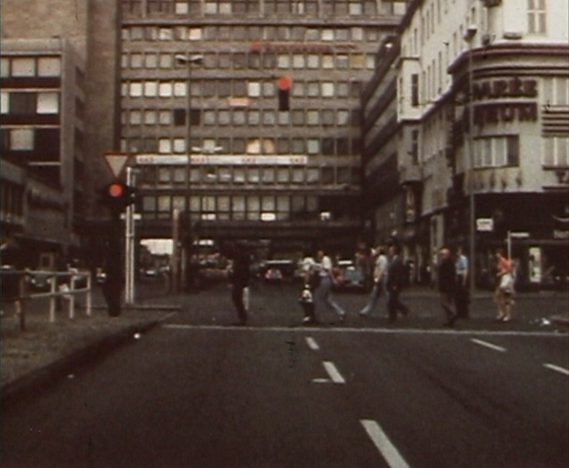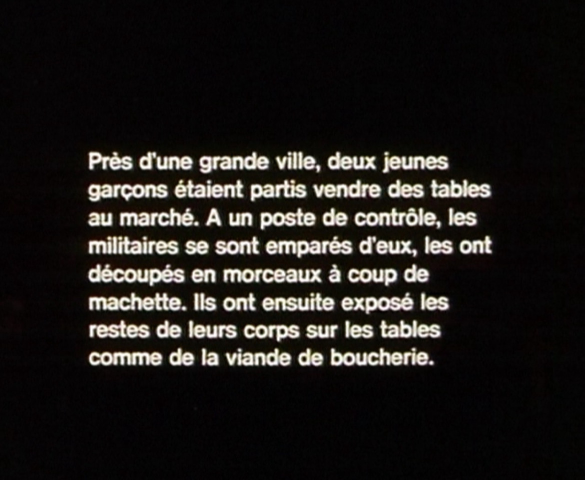 « La deuxième partie de cette série, Soliloque 2 / La barbarie (1982,16mm, 20 min), intervient après quatre ans (Alain Grandchamp à la caméra, ainsi que des images additionnelles de José-Michel Bühler et Véronique Goël, et Luc Yersin au son). Le film s’ouvre sur un carton qui donne le ton : les temples d’Angkor sont à nouveau soumis au vandalisme, des militaires tirant sur les divinités féminines et faisant éclater leur poitrine. L’enjeu du film est manifestement politique, mais celui-ci ne s’exprime pas ouvertement, directement, immédiatement, comme dans le cinéma militant. La séquence suivante, à travers un cadrage fixe sur une rue et un bâtiment, capte de façon discontinue des passants qui traversent le cadre de gauche à droite, ou inversement. Les coupes sont nombreuses : la dynamique de la séquence est celle d’un va-et-vient urbain ; des corps anonymes apparaissent et disparaissent, tandis qu’une voix-over récite des entrées de mots croisés. Le film joue systématiquement sur l’alternance entre des cartons, reprenant des coupures du journal Le Monde témoignant de la barbarie et de la violence de par le monde, et des séquences tournées pour le film. Nouvel intertitre : un militaire approche le canon de son fusil de la bouche d’un bébé qui instinctivement se met à téter ; il tire. S’ensuit, en voix-over, un échange épistolaire entre Luca (une lettre en italien lue par Maurice Magnoni), à Milan, et la réalisatrice (une lettre lue en français par Claudine Després), de retour à Genève, après un long voyage en Grèce puis en Italie. La séquence multiplie les travellings dans les différentes villes évoquées, certains plans fixes apparaissant comme des leitmotivs, telle une entrée de maison évoquant le lieu de résidence de Luca à Milan. Le film se retourne sur lui-même, fait retour sur son processus de production et de création, la cinéaste évoquant dans sa lettre un retour au travail – aussi bien alimentaire que cinématographique : préparation du scénario, du budget, du plan de financement. L’échange tourne court : sur fond d’un écran blanc, amorce signifiant la disparition, la réalisatrice reçoit sa lettre en retour par le frère de Luca, qui lui annonce le décès brutal de celui-ci. En écho, suit un long plan-séquence, silencieux, cadrant des vagues. Survient un nouvel intertitre : arrêtés à un poste de contrôle, deux jeunes garçons sont découpés à coup de machette par des militaires, et le reste de leurs corps exposé sur des tables comme de la viande de boucherie. Une voix-over énonce les entrées de mots croisés, tandis que les plans sont composés de travellings-avant pris depuis une voiture dans les rues de Berlin. Le film s’interrompt sur le mur qui divise l’Est et l’Ouest de la ville, sans possibilité d’échappatoire – avant de laisser place à une absence d’images, comblée par une voix-over qui dénonce le silence des coupables, pour finalement laisser place à un ultime carton qui complète les propos tenus over : « institutionnaliser l’oubli ». Les mots croisés constituent une clef de lecture du film : les mots à trouver renvoient tous à la barbarie, tandis que le sens des colonnes – d’abord, verticalement ; ensuite, horizontalement – dessine un quadrillage, littéralement une grille, qui est dupliquée à travers les travellings urbains. »